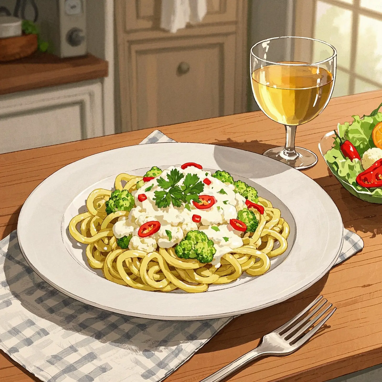 Remove the pot from the heat. Garnish the pasta with parsley and serve it immediately.