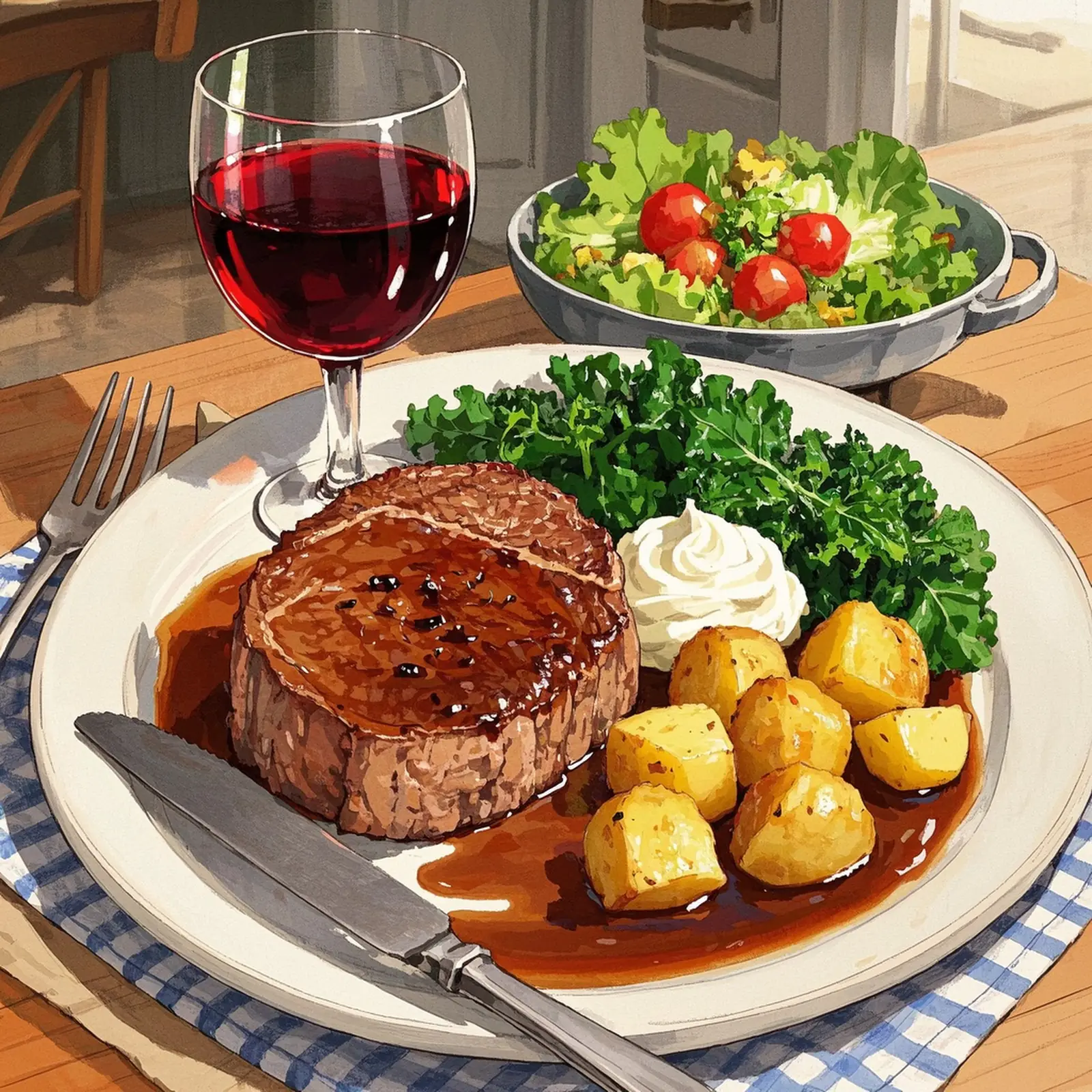 - • Separate the steak, potatoes, creamed kale, and peppercorn sauce when storing to maintain texture and flavor.